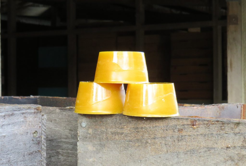 Our beeswax blocks are made from the wax left over at the end of the extraction process, where the wax is separated from the honey. We melt it down and pour it into moulds to create beeswax blocks.