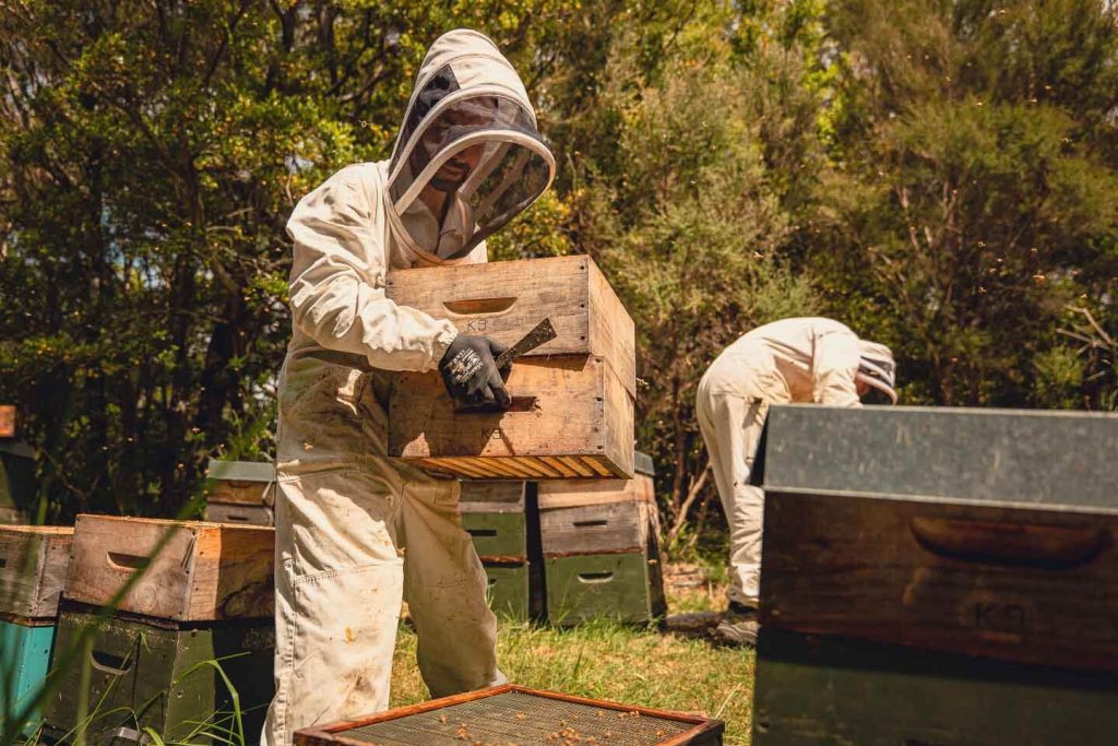 One of the great things about beekeeping is that the work varies throughout the year, so a typical day in summer is quite different to a typical day in spring or winter. Spring is our most challenging time of the year. That’s when the hives are building up bee numbers ready for summer. That’s what we want — we just need to be careful they don’t get too strong too quickly or they will swarm and we are back to square one. Spring is a difficult balancing act.