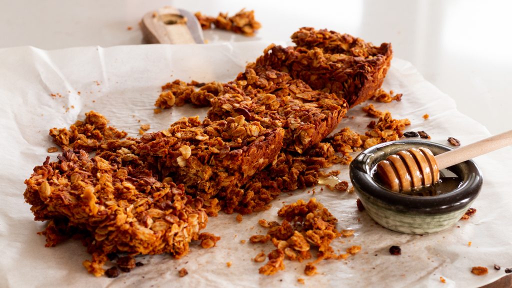 This lovely warming slice is just what you need as the days begin to get cooler. If you are feeling a little naughty, a drizzle of good quality melted dark chocolate over the cooled slice is a nice addition.