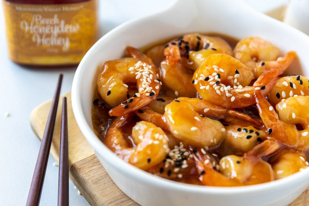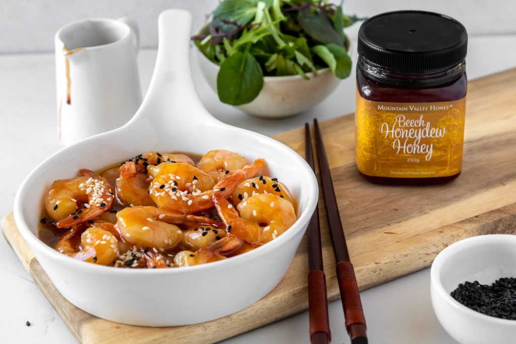 Honey Garlic Prawns Recipe with Beech Honeydew Honey