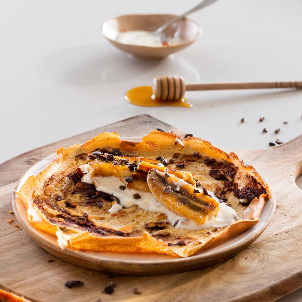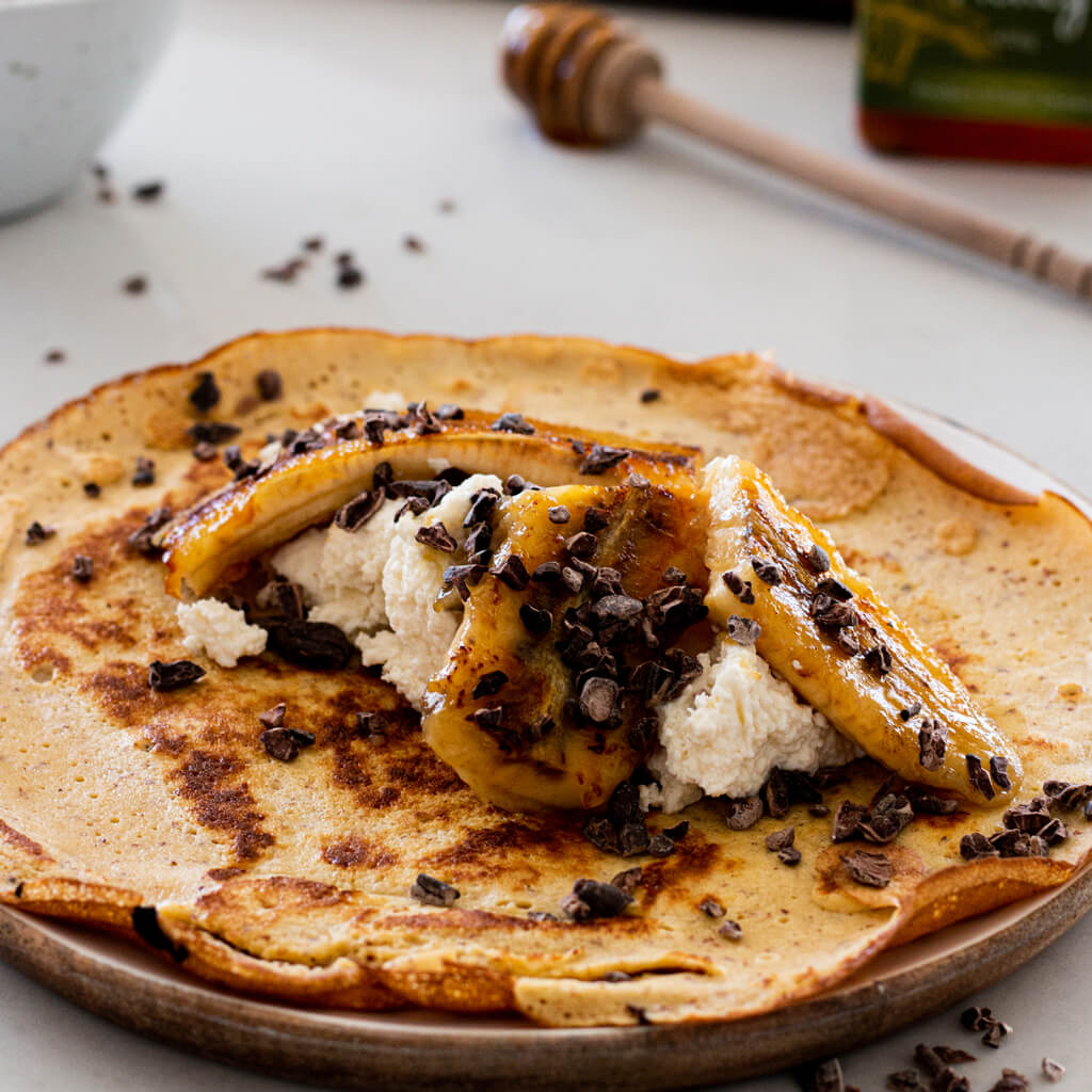 Honey & Ricotta Crêpes Recipe with Caramelised Banana & Chilli Chocolate