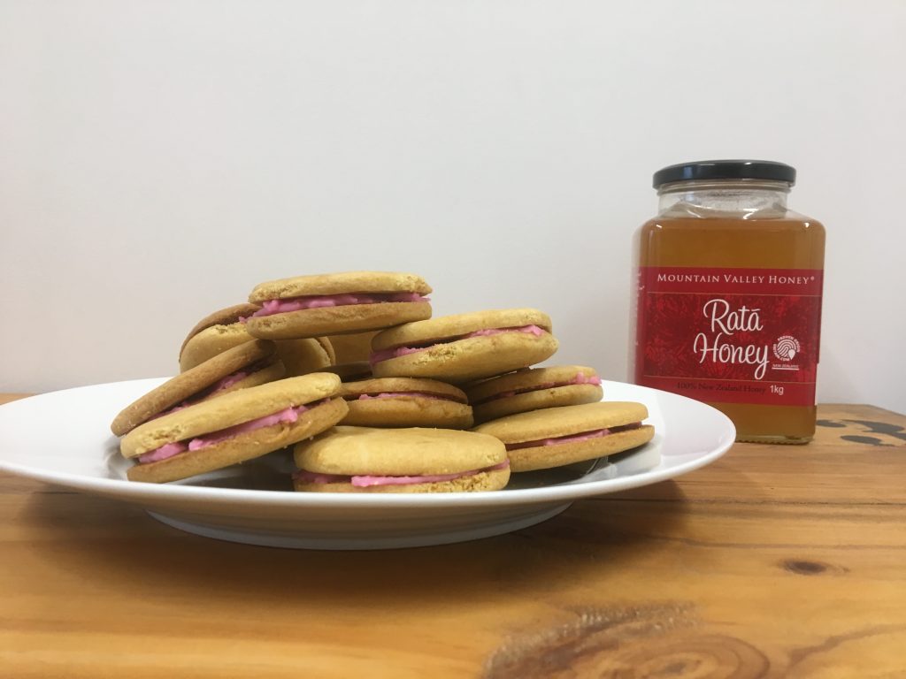 A Collaboration with BakerGatherer Inspired by the prosperous Nelson region and it’s amazing produce and food, dripping with goodness, this Tea and Honey Cake uses MVH Manuka Honey for it’s full-bodied and earthy flavours. This is then layered with Earl Grey infused Buttercream and plenty of cookie crumbs, because after all, what tea is complete without the perfect dipping cookie. There are also two ways to assemble this cake, a shorter and longer technique. So depending on how daring you are, the amount of time you have or the overall aesthetic you want to achieve, make sure you read both assembly instructions in the method below. Prep Time: 30 minsCook Time: 35 minsCrumb & Milk: 20 mins Ingredients Honey Cake 430g plain flour300g caster sugar2 tsp.