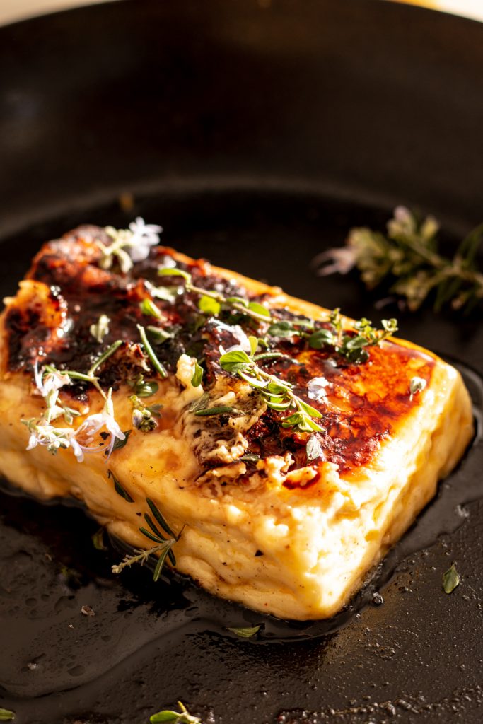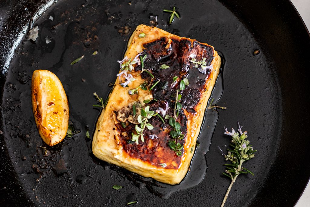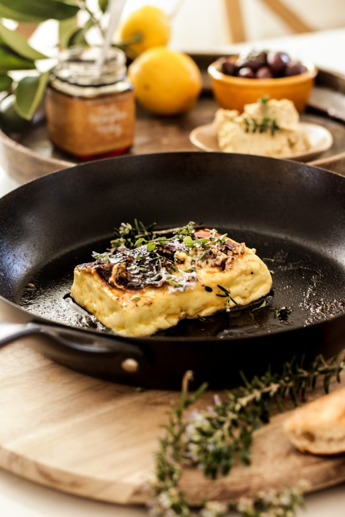 Saganaki Recipe with Caramelised Beech Honeydew Honey & Thyme