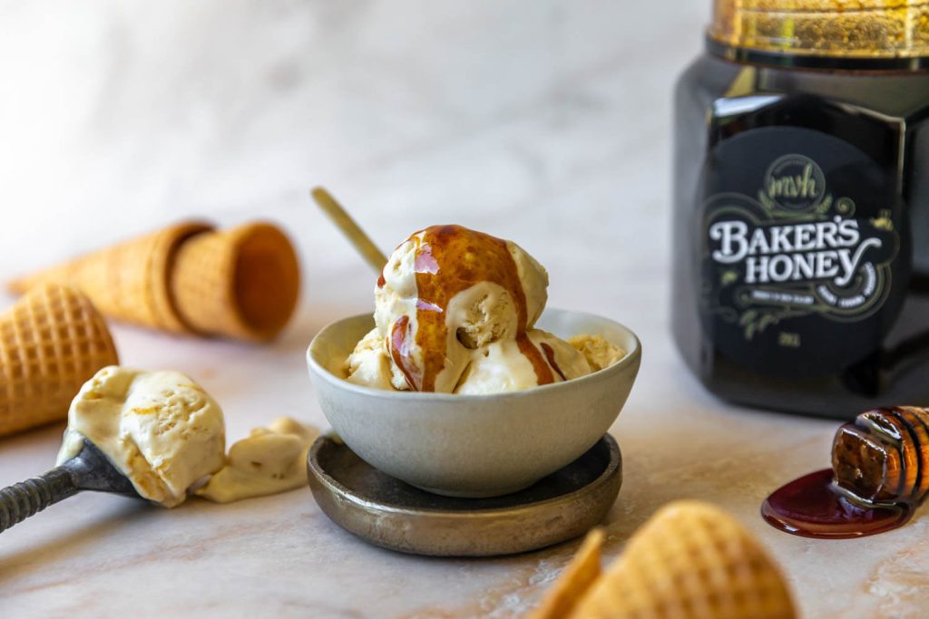 Treat yourself to our salted honey ice cream recipe featuring Baker’s Honey. This delightful frozen treat doesn’t require an ice cream maker, making it perfect for those spontaneous gatherings with friends or lazy Sunday afternoons. The creamy, honey-infused ice cream boasts a subtle hint of sea salt that balances the sweetness. Whether enjoyed as a refreshing pick-me-up on a warm summer day or a comforting spoonful by the fireplace in winter, this ice cream is a versatile and crowd-pleasing delight that will satisfy your sweet cravings with every spoonful.