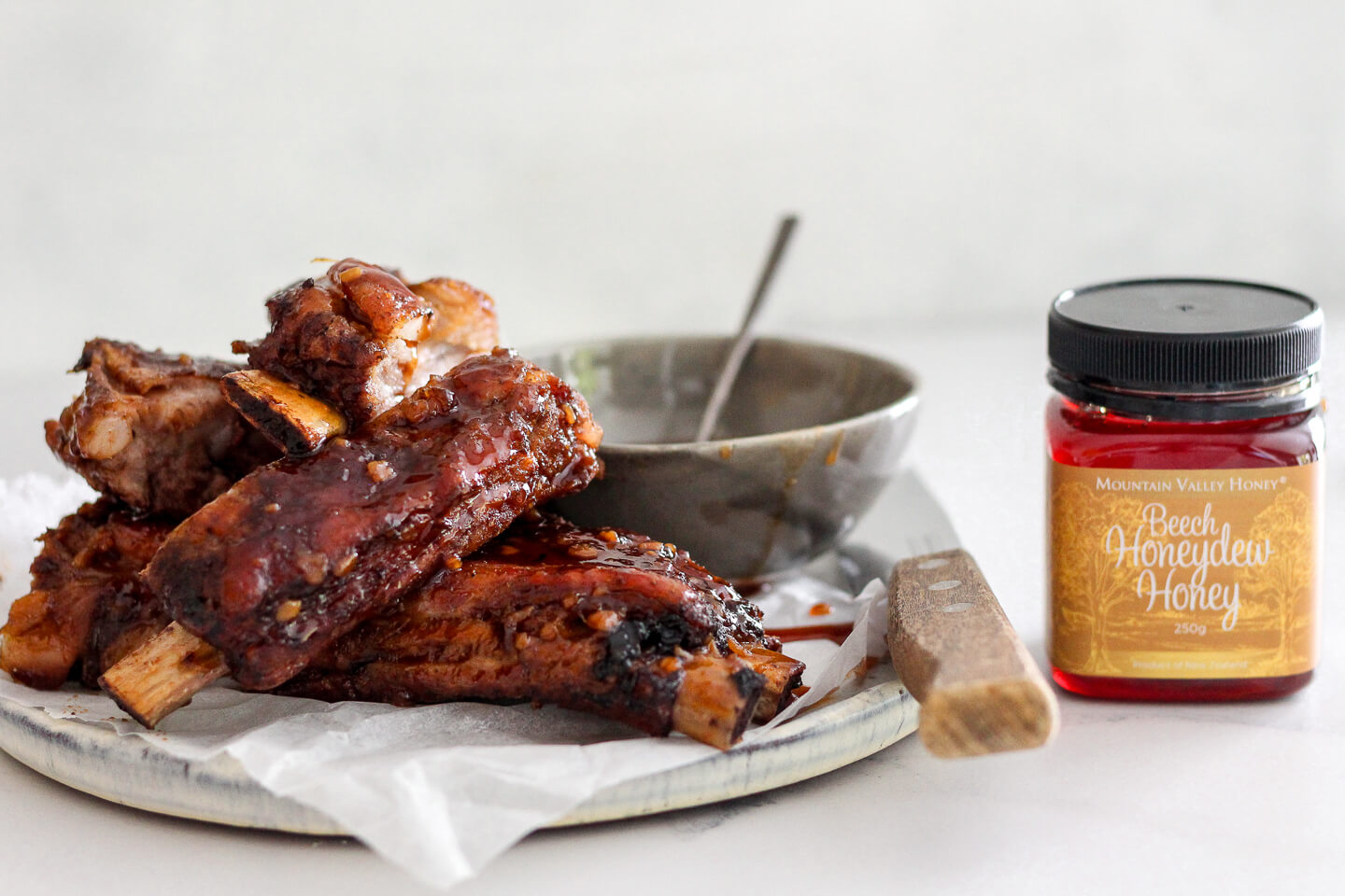 Bourbon & Honey Sticky Pork Ribs Recipe with Beech Honeydew Honey